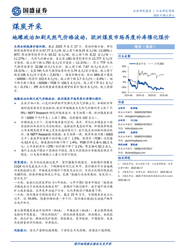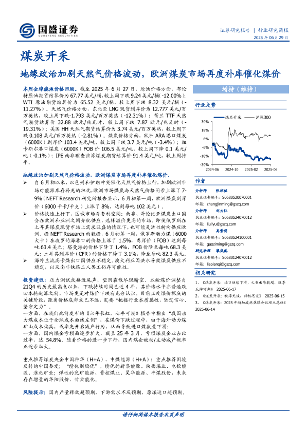 【国盛证券】【20250629】煤炭开采:地缘政治加剧天然气价格波动,欧洲煤炭市场再度补库催化煤价-12页