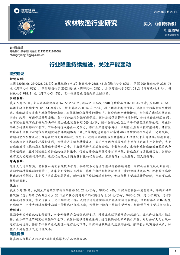 【国金证券】【20250629】农林牧渔行业研究:行业降重持续推进,关注产能变动-13页