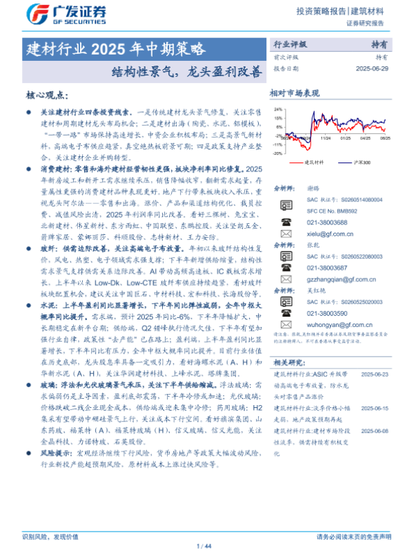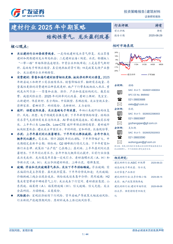 【广发证券】【20250629】建材行业2025年中期策略:结构性景气,龙头盈利改善-44页