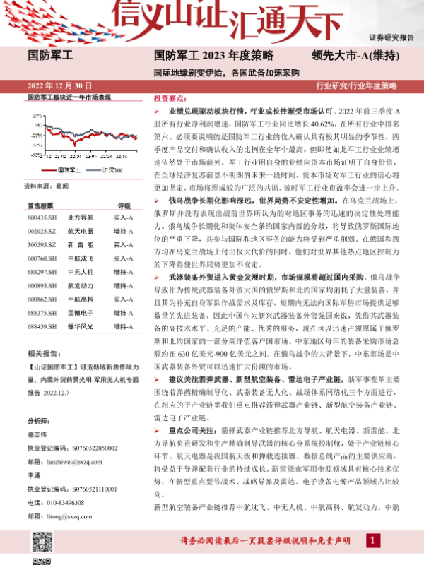国防军工 国际地缘政治 武器装备采购 股票评级 行业分析