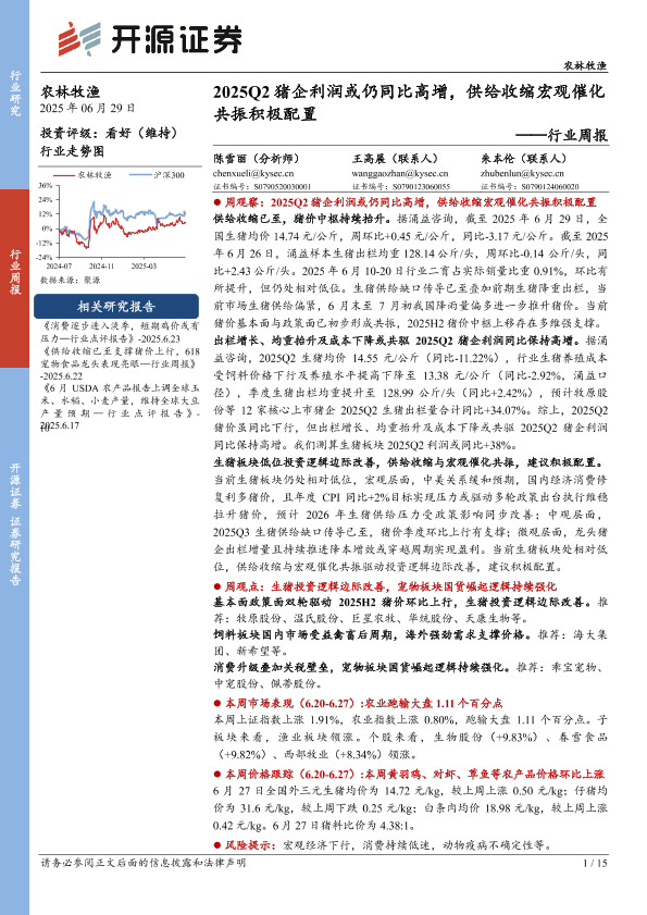 【开源证券】【20250629】2025Q2猪企利润或仍同比高增,供给收缩宏观催化共振积极配置-15页