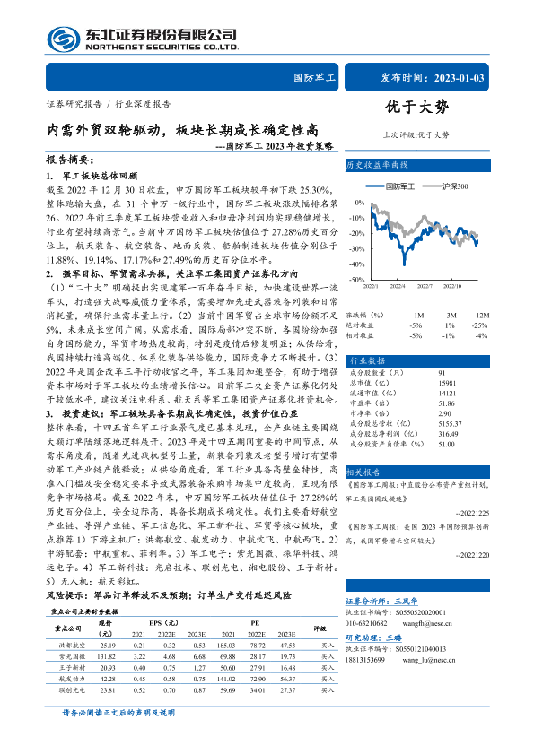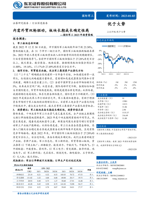 【东北证券】【20230103】国防军工行业2023年投资策略;内需外贸双轮驱动,板块长期成长确定性高-53页