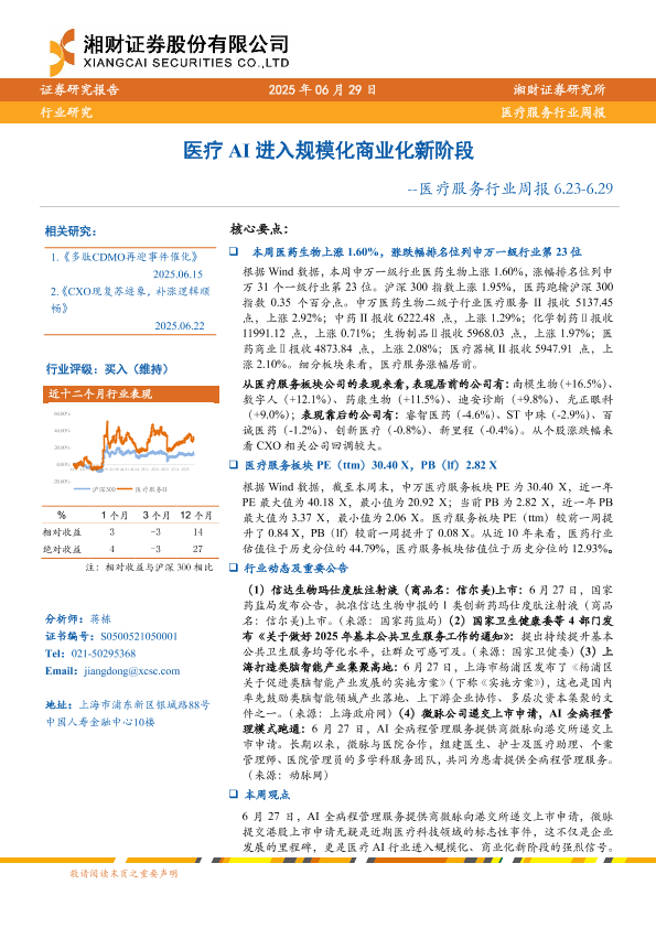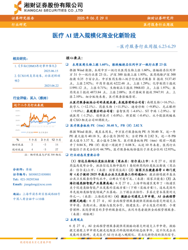 【湘财证券】【20250629】医疗服务行业周报:医疗AI进入规模化商业化新阶段-12页