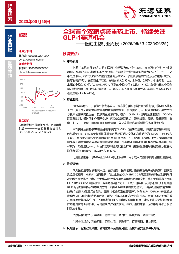 【东海证券】【20250630】全球首个双靶点减重药上市,持续关注GLP-1赛道机会-10页