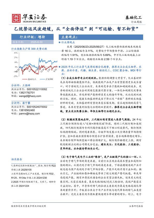 【华安证券】【20250630】基础化工行业周报:乙烷禁运风波趋缓,从“全面停运”到“可运输、暂不卸货”-32页