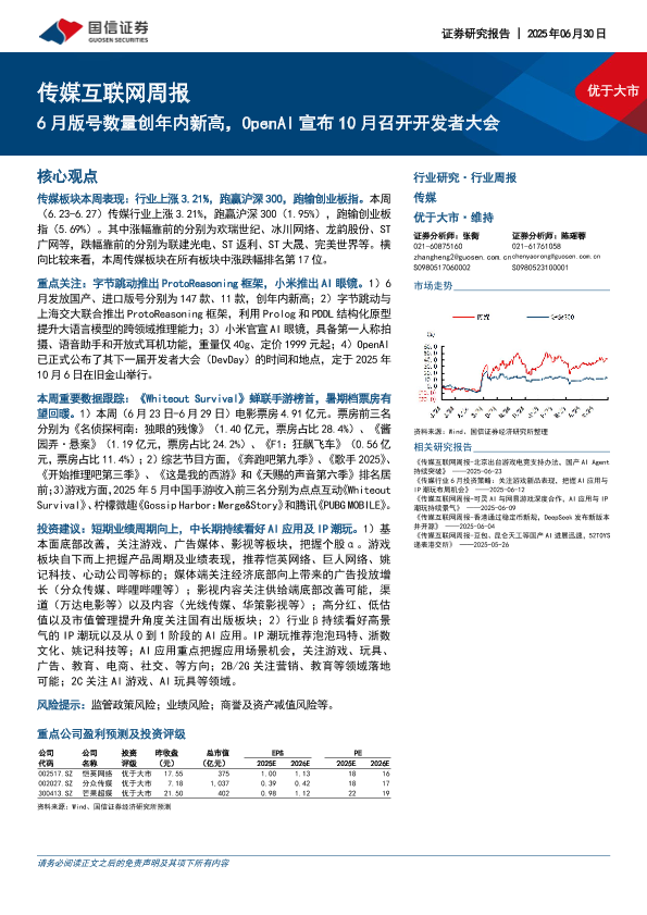 【国信证券】【20250630】传媒互联网周报:6月版号数量创年内新高,OpenAI宣布10月召开开发者大会-14页