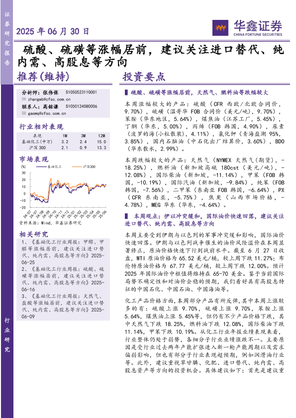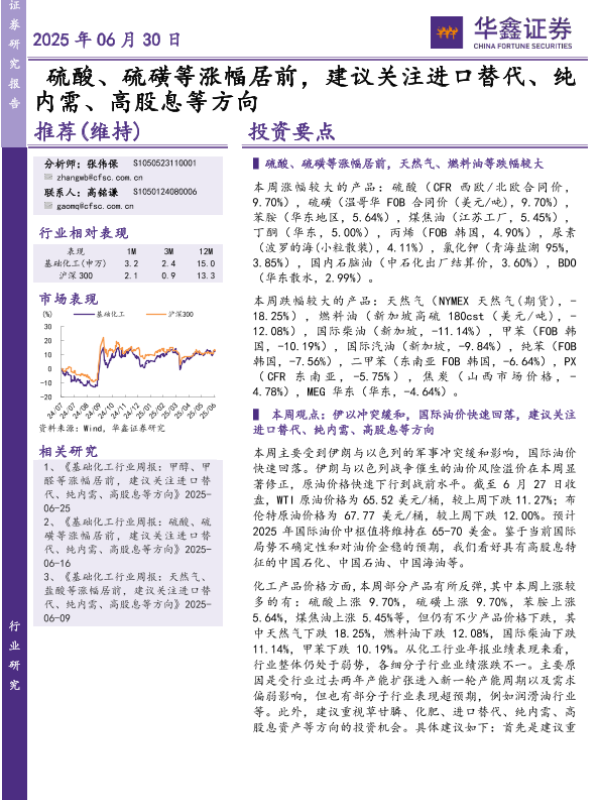【华鑫证券】【20250630】硫酸、硫磺等涨幅居前,建议关注进口替代、纯内需、高股息等方向-31页