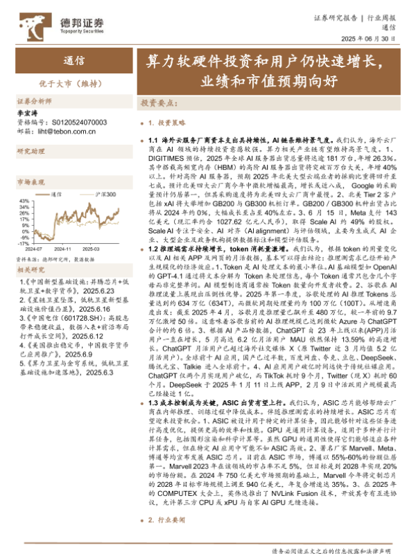 【德邦证券】【20250630】通信行业周报:算力软硬件投资和用户仍快速增长,业绩和市值预期向好-17页