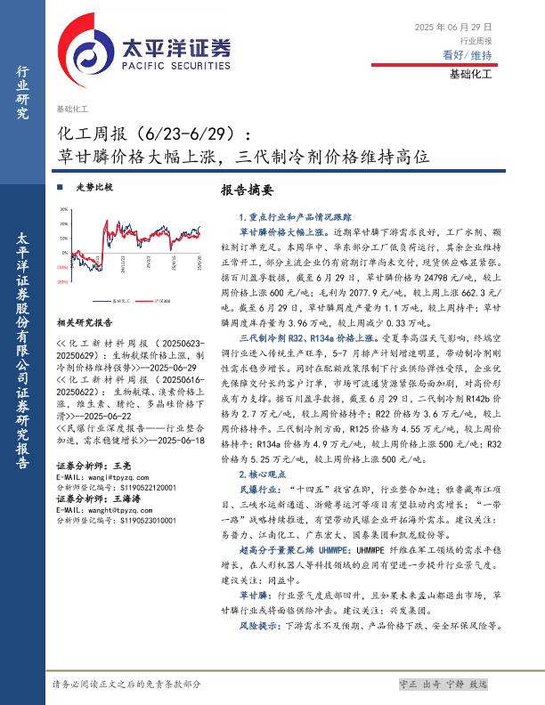 【太平洋证券】【20250629】基础化工行业周报:草甘膦价格大幅上涨,三代制冷剂价格维持高位-33页