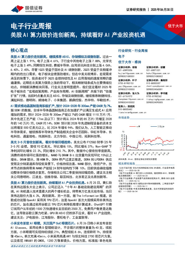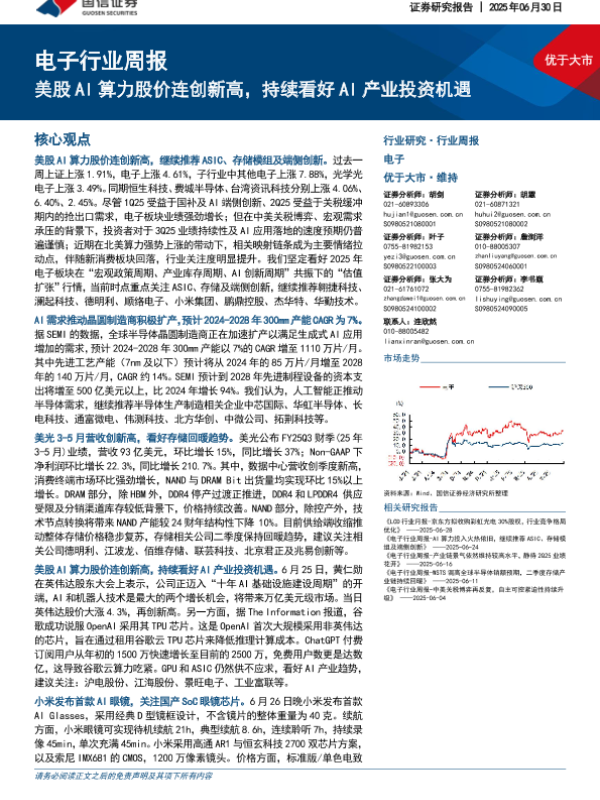 【国信证券】【20250630】电子行业周报:美股AI算力股价连创新高,持续看好AI产业投资机遇-11页