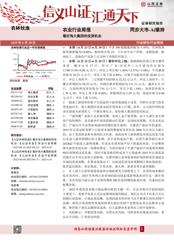 【山西证券】【20250630】农业行业周报:看好海大集团的投资机会-19页