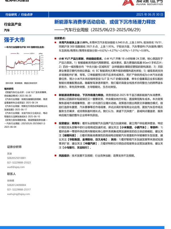 【爱建证券】【20250630】汽车行业周报:新能源车消费季活动启动,或促下沉市场潜力释放-17页