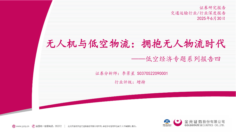 【金元证券】【20250630】无人机与低空物流:拥抱无人物流时代-35页