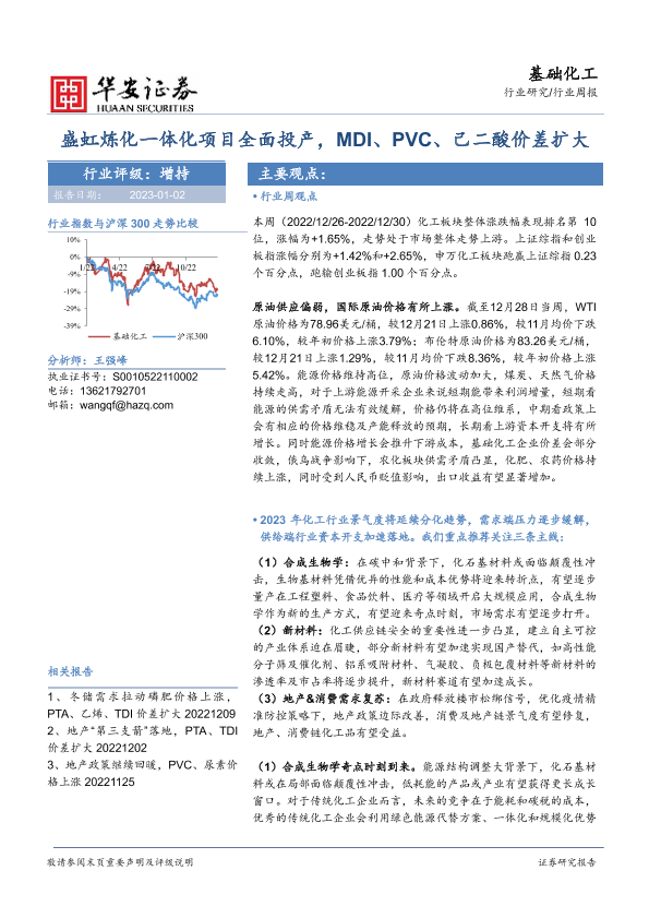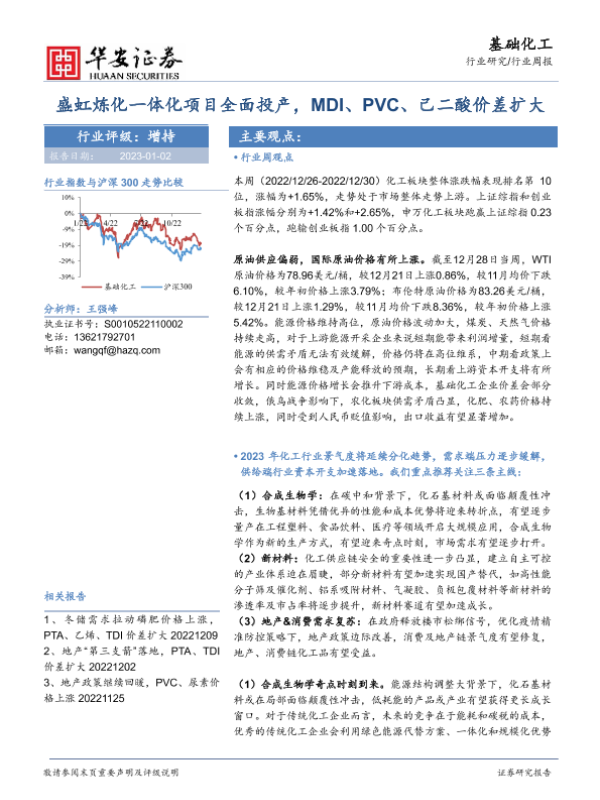 【华安证券】【20230102】基础化工行业周报:盛虹炼化一体化项目全面投产,MDI、PVC、己二酸价差扩大-41页