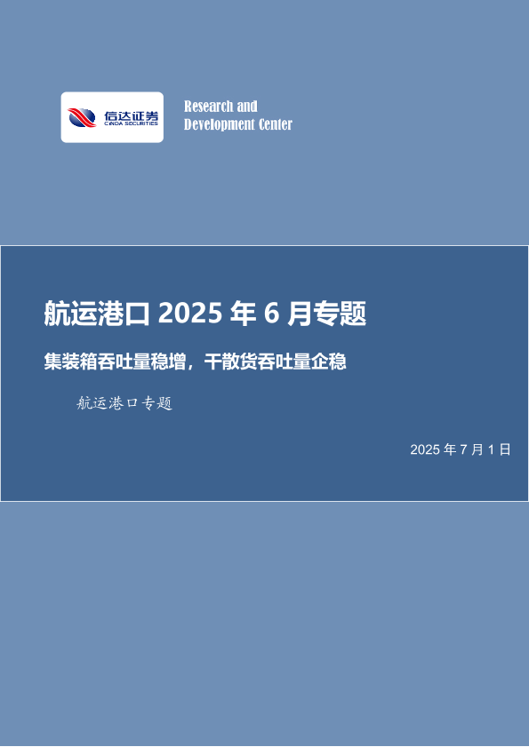 【信达证券】【20250701】航运港口 2025年 6月专题:集装箱吞吐量稳增,干散货吞吐量企稳-25页