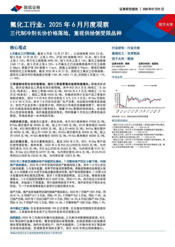 【国信证券】【20250701】2025年6月月度观察:三代制冷剂长协价格落地,重视供给侧受限品种-26页