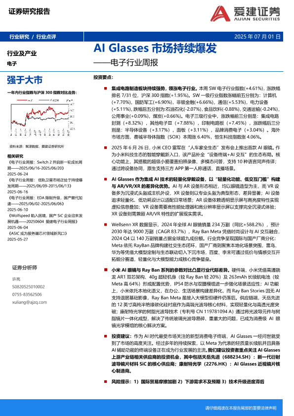 【爱建证券】【20250701】电子行业周报:AI Glasses市场持续爆发-15页