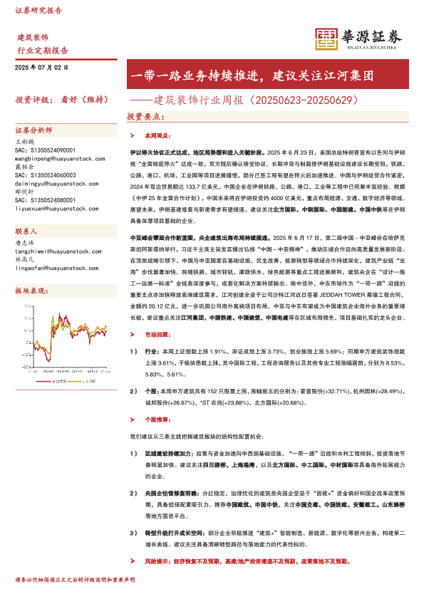 【华源证券】【20250702】建筑装饰行业周报:一带一路业务持续推进,建议关注江河集团-11页
