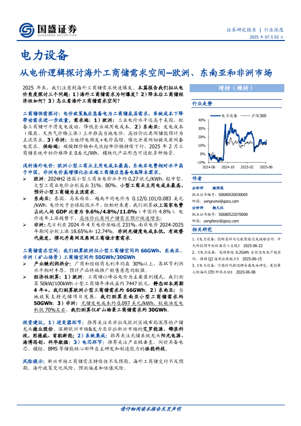 【国盛证券】【20250702】从电价逻辑探讨海外工商储需求空间–欧洲、东南亚和非洲市场-20页