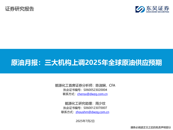 【东吴证券】【20250702】原油月报:三大机构上调2025年全球原油供应预期-42页