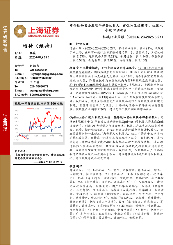 【上海证券】【20250703】机械行业周报:英伟达和富士康联手部署机器人,建议关注核聚变、机器人个股回调机会-15页