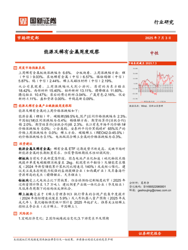 【国新证券】【20250703】能源及稀有金属周度观察-10页