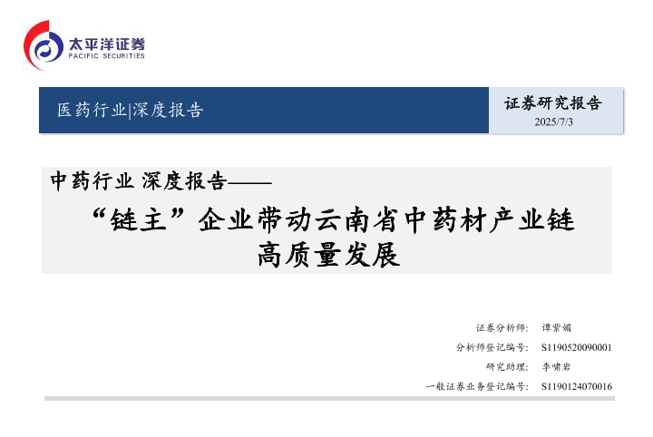 【太平洋证券】【20250703】中药行业深度报告:“链主”企业带动云南省中药材产业链高质量发展-30页