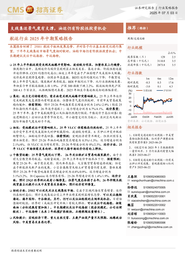 【海通证券】【20250703】航运行业2025年中期策略报告:支线集运景气度有支撑,油运仍有阶段性投资机会-23页
