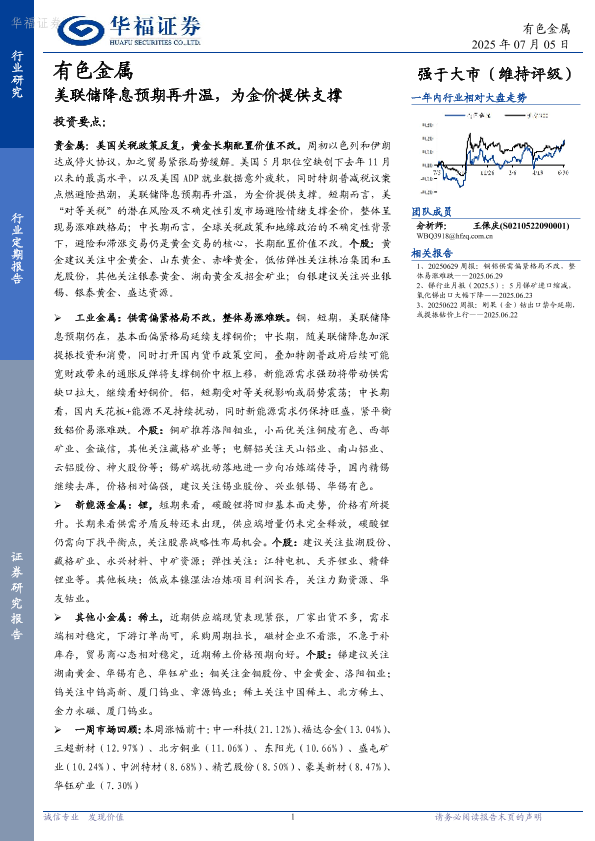 【华福证券】【20250705】有色金属行业定期报告:美联储降息预期再升温,为金价提供支撑-17页