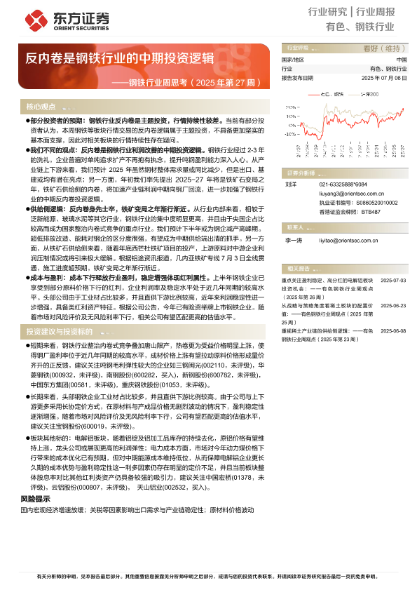 【东方证券】【20250706】钢铁行业周思考:反内卷是钢铁行业的中期投资逻辑-26页