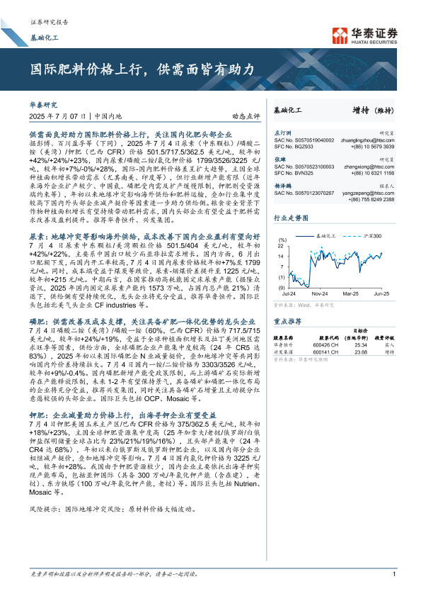 【华泰证券】【20250707】基础化工动态点评:国际肥料价格上行,供需面皆有助力-10页