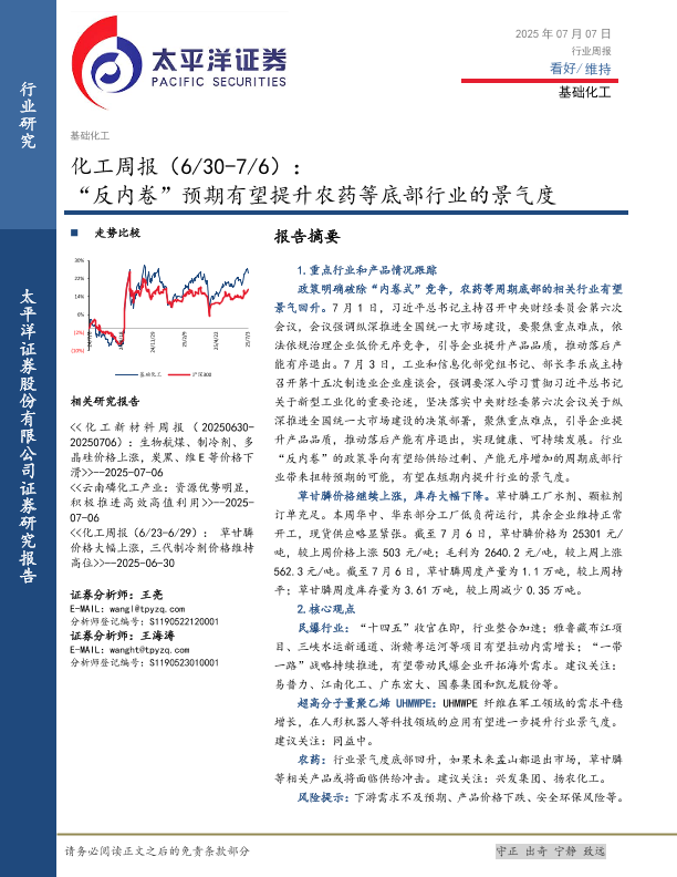 【太平洋证券】【20250707】化工行业周报:“反内卷”预期有望提升农药等底部行业的景气度-33页