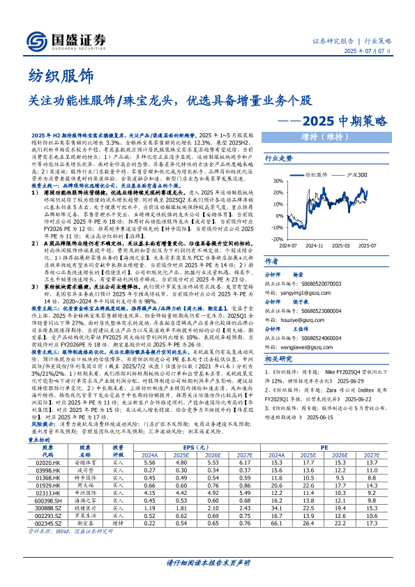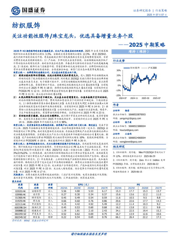 【国盛证券】【20250707】纺织服饰2025中期策略:关注功能性服饰 珠宝龙头,优选具备增量业务个股-32页