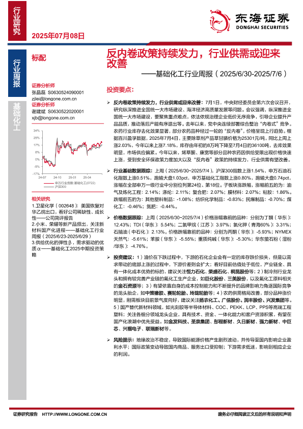 【东海证券】【20250708】基础化工行业周报:反内卷政策持续发力,行业供需或迎来改善-19页