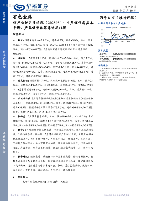 【华福证券】【20250710】锂产业链月度追踪(202505):5月锂供需基本平衡,产业链整体累库速度放缓-19页