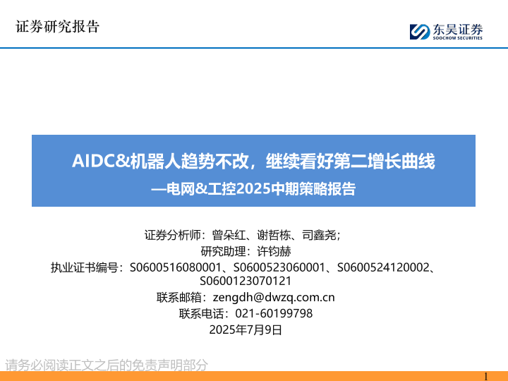 【东吴证券】【20250709】电网&工控2025中期策略报告:AIDC&机器人趋势不改,继续看好第二增长曲线-68页