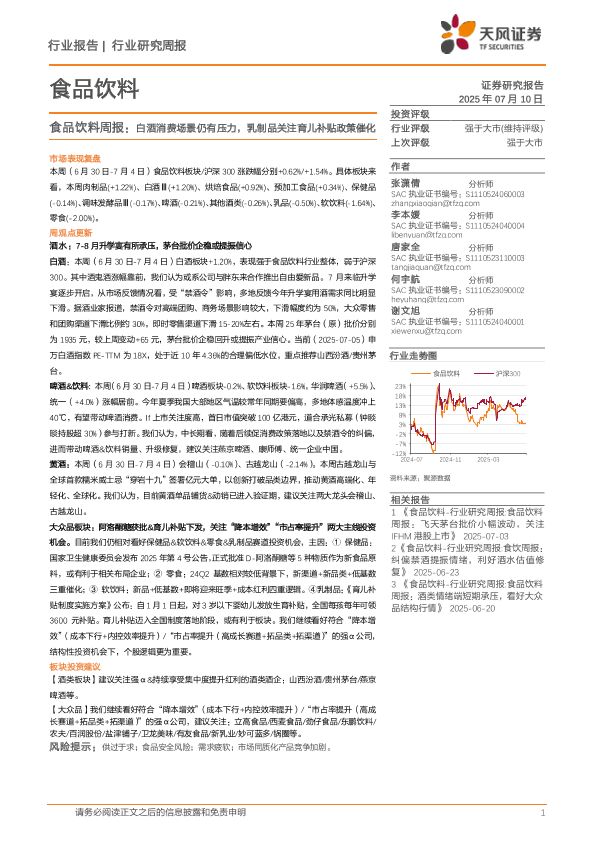 【天风证券】【20250710】食品饮料周报:白酒消费场景仍有压力,乳制品关注育儿补贴政策催化-19页