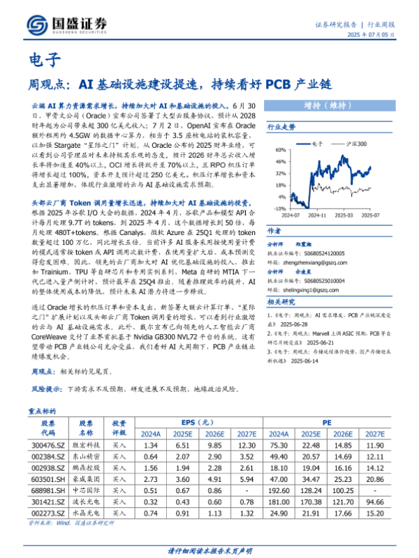 【国盛证券】【20250705】电子周观点:AI基础设施建设提速,持续看好PCB产业链-12页