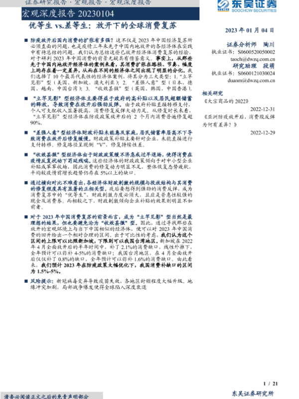 【东吴证券】【20230104】宏观深度报告:优等生vs.差等生,放开下的全球消费复苏-21页