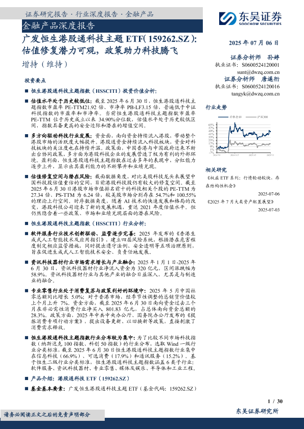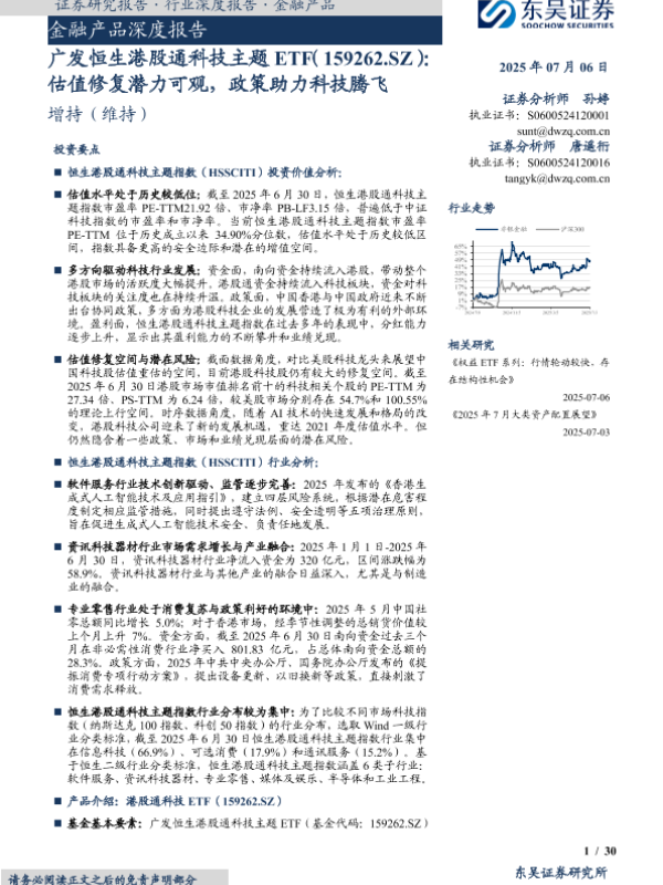 【东吴证券】【20250706】广发恒生港股通科技主题ETF:估值修复潜力可观,政策助力科技腾飞-30页