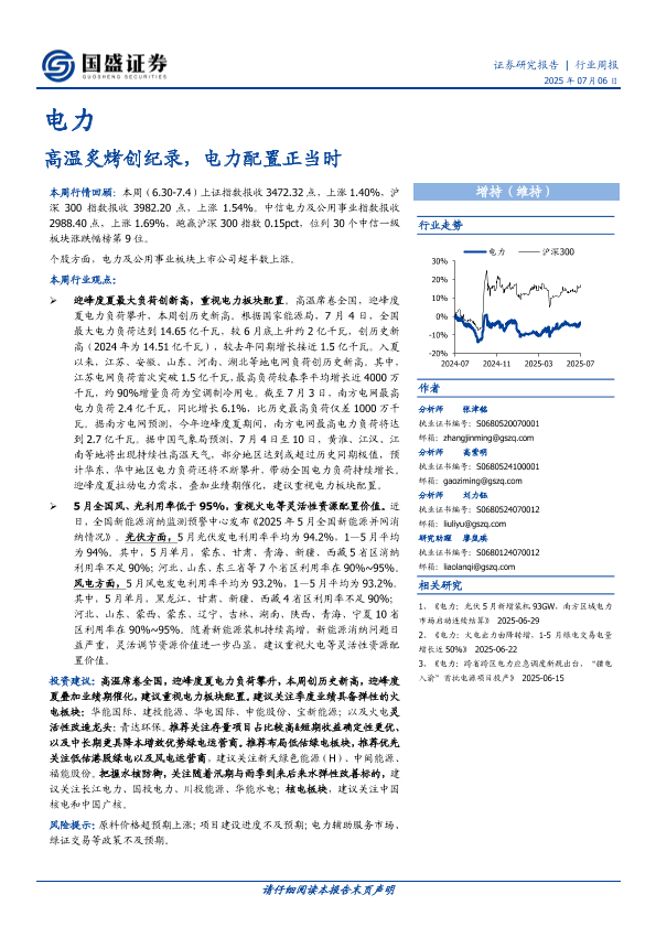 【国盛证券】【20250706】电力行业周报:高温炙烤创纪录,电力配置正当时-15页