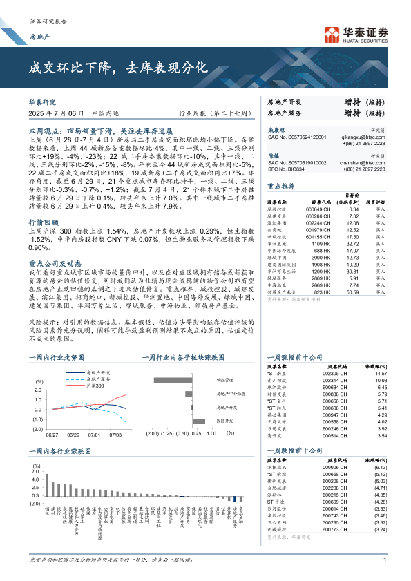 【华泰证券】【20250706】房地产行业周报(第二十七周):成交环比下降,去库表现分化-18页