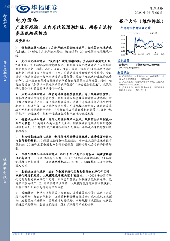 【华福证券】【20250706】电力设备产业周跟踪:反内卷政策预期加强,两条直流特高压线路获核准-17页