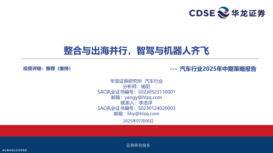 【华龙证券】【20250706】汽车行业2025年中期策略报告:整合与出海并行,智驾与机器人齐飞-37页