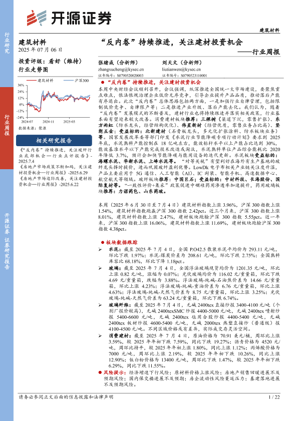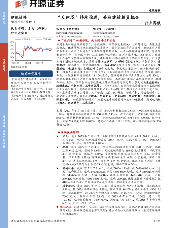【开源证券】【20250706】“反内卷”持续推进,关注建材投资机会-22页