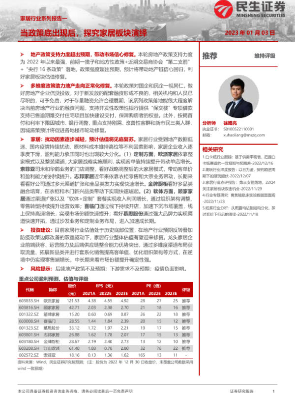【民生证券】【20230103】家居行业系列报告一:当政策底出现后,探究家居板块演绎-49页