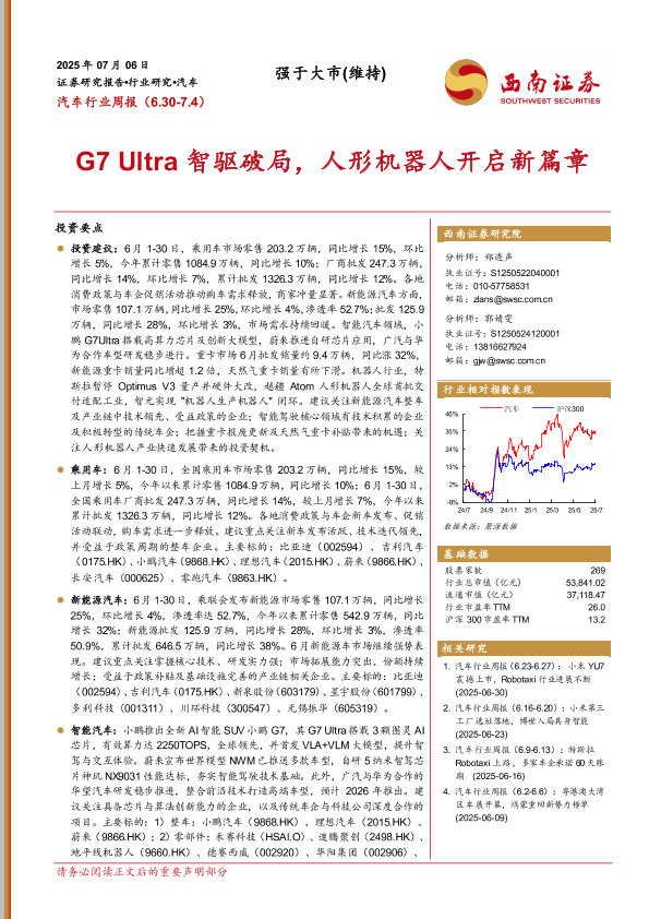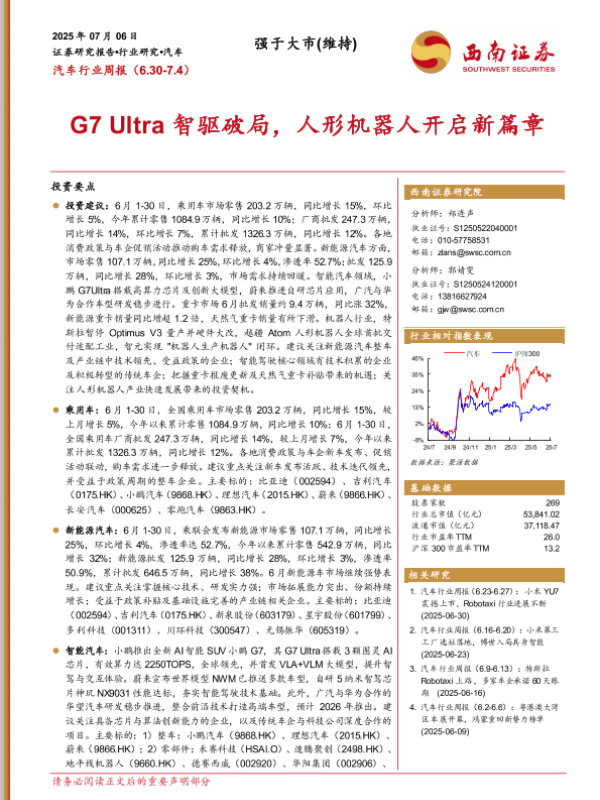 【西南证券】【20250706】汽车行业周报:G7 Ultra智驱破局,人形机器人开启新篇章-21页