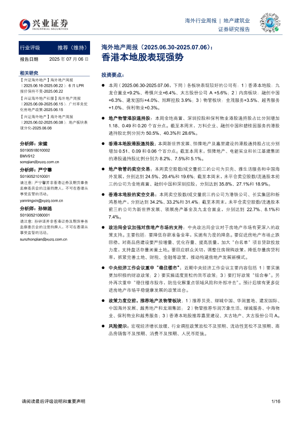 【兴业证券】【20250706】海外地产周报:香港本地股表现强势-16页
