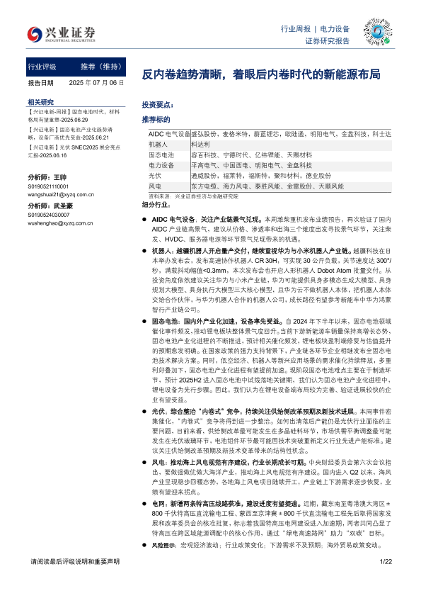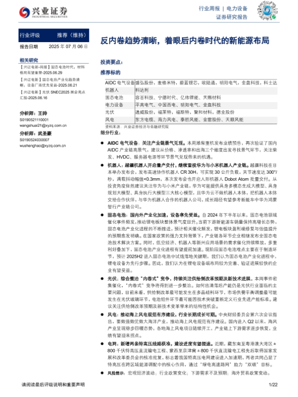【兴业证券】【20250706】电力设备行业周报:反内卷趋势清晰,着眼后内卷时代的新能源布局-22页