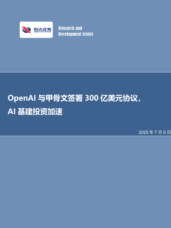 【信达证券】【20250706】OpenAI与甲骨文签署300亿美元协议,AI基建投资加速-11页